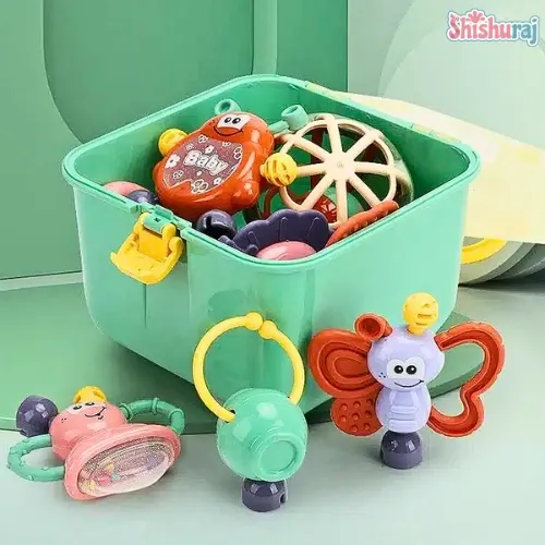 11pcs Baby Rattle Teether Set price in Bangladesh – BPA-free newborn toy set for sensory development and teething relief. Safe, colourful & engaging baby toys. Order now from Shishuraj(শিশুরাজ).