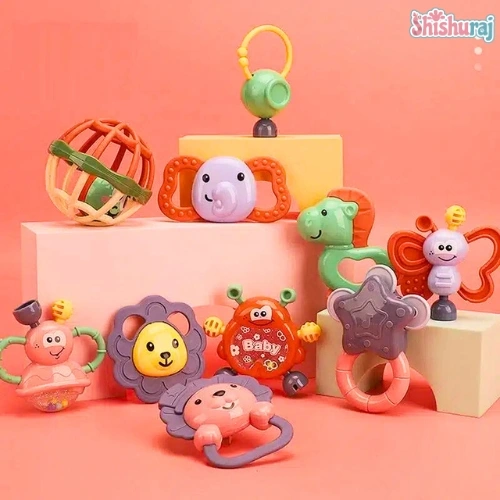 এক সেটে ১১টি ভিন্ন rattle ও teether — variety play ও learning নিশ্চিত করে।