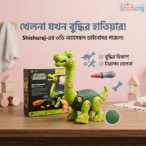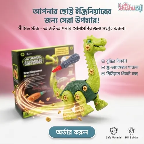 3D Screw Assembled Dinosaurs Puzzle – DIY dinosaur building toy with screw assembly। Kids creativity, motor skill ও problem-solving development-এর জন্য perfect educational toy। এখনই অর্ডার করুন!