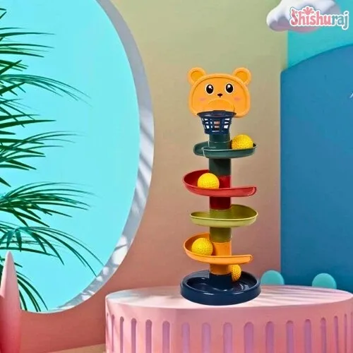 4-Layer Ball Drop Swirling Tower: Colorful spiral ball drop toy for babies. Boosts visual tracking, motor skills & early learning. Safe, fun & durable—order now from ShishuRaj!