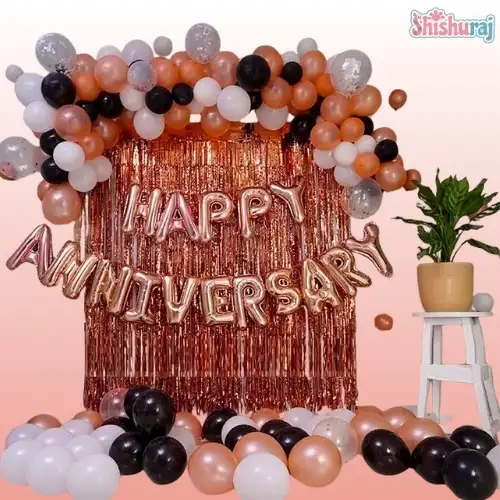 এই Anniversary Party Package-58 দিয়ে খুব সহজেই তৈরি করুন একটি classy, romantic & photo-ready anniversary décor setup। White–Black–Pink color combo ঘরকে দেয় premium anniversary vibe!