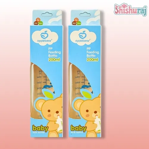 Apple Bear PP Feeding Glass Bottle with Silicone Nipple – 200ml: BPA-free, soft & safe silicone nipple for milk, formula & juice. নিরাপদ, আরামদায়ক ও hygienic feeding solution। অর্ডার করুন ShishuRaj থেকে!
