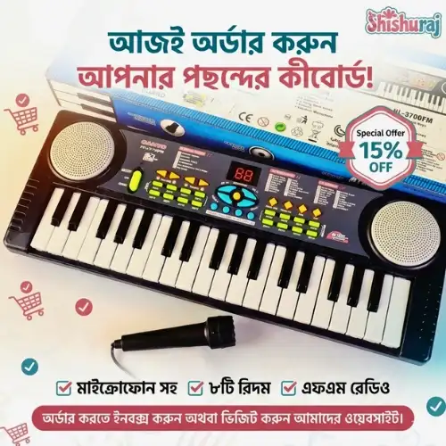 এই Canto Electronic 37 Keys Keyboard Piano বাচ্চাদের জন্য একটি fun ও educational musical toy। 8 tones, 8 beats, microphone ও FM radio feature থাকার কারণে এটি learning ও entertainment—দুটোরই perfect combination।