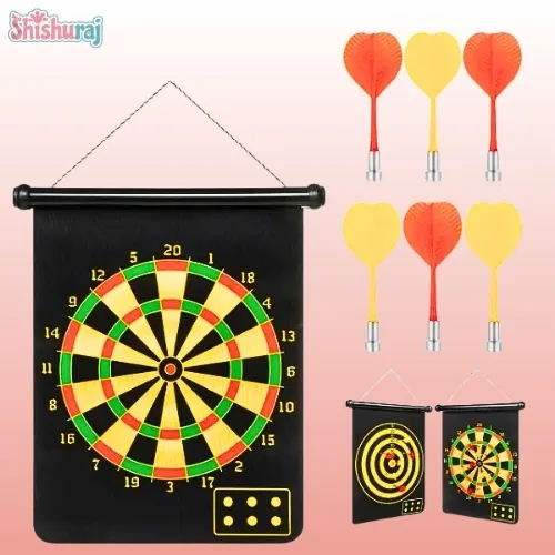Magnetic Dart Board Game Price in Bangladesh | Double-Sided Dart Board with 6 Magnetic Darts for Kids